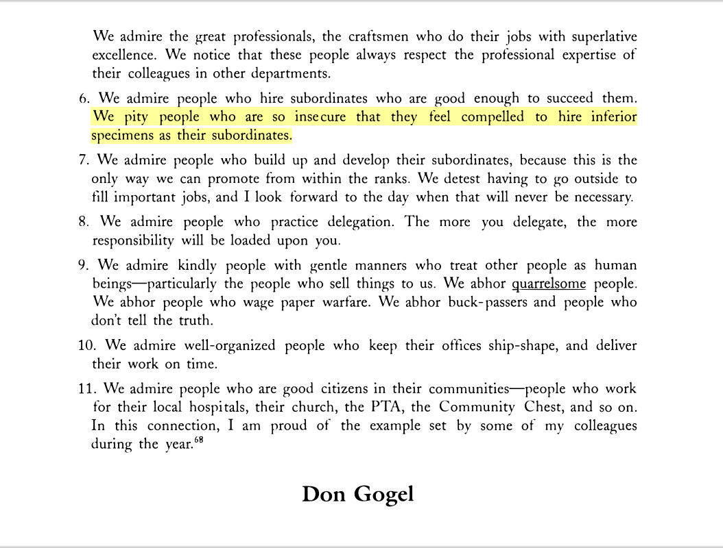 “We pity people who are so insecure that they feel compelled to hire inferior specimens as their subordinates.”
