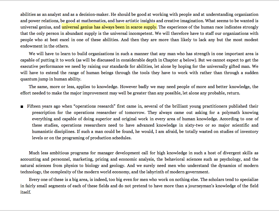 “Universal genius has always been in scarce supply.”