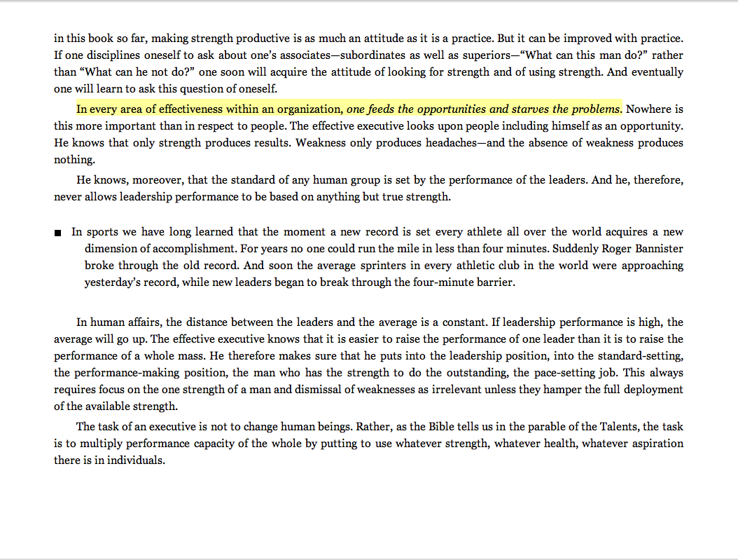 “In every area of effectiveness within an organization, one feeds the opportunities and starves the problems.”