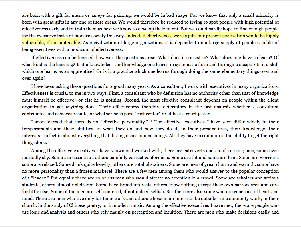 “If effectiveness were a gift [rather than something that can be learned], our present civilization would be highly vulnerable, if not untenable.”