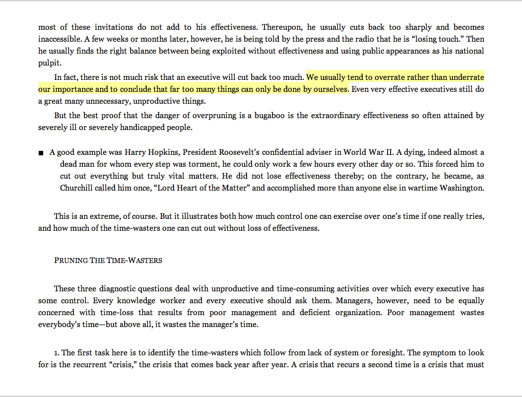 “We usually tend to overrate rather than underrate our importance and to conclude that far too many things can only be done by ourselves.”