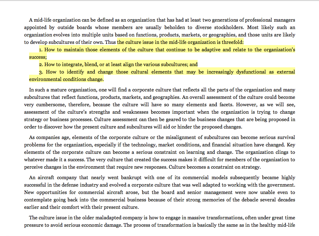 3. How to identify and change those cultural elements that may be increasingly dysfunctional as external environmental conditions change.”