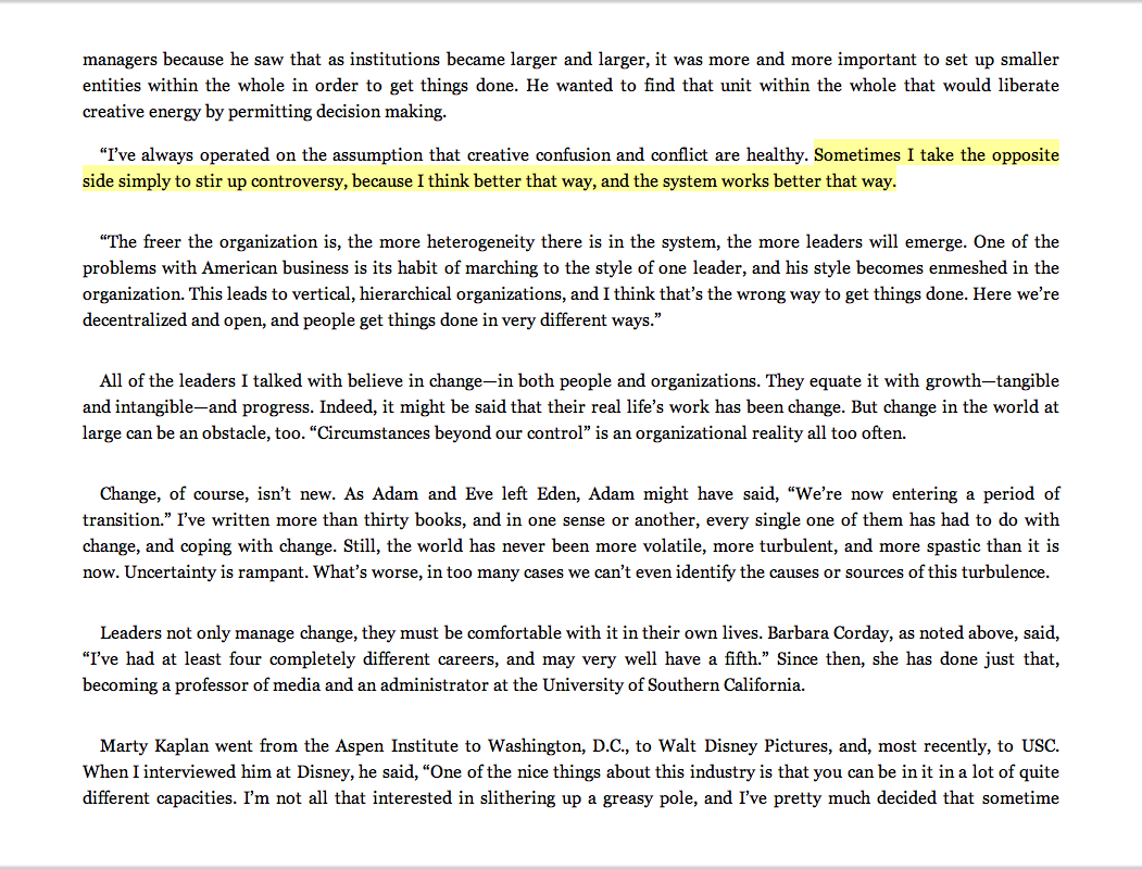 “Sometimes I take the opposite side simply to stir up controversy, because I think better that way, and the system works better that way.”