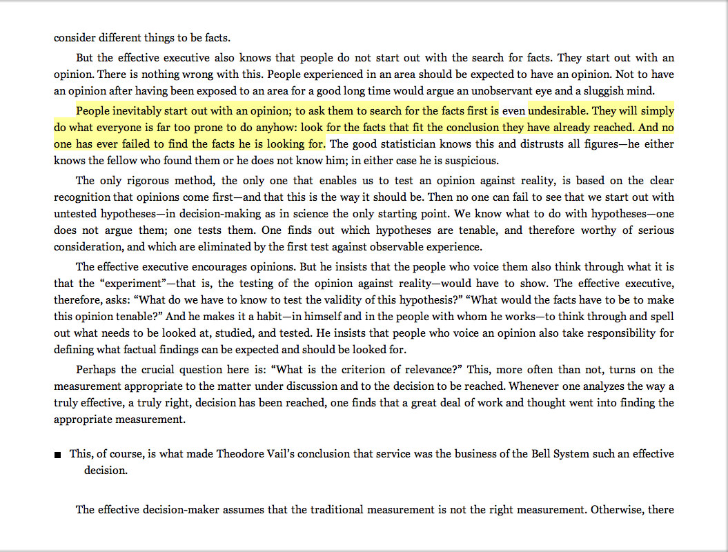 “People inevitably start out with an opinion; to ask them to search for the facts first is even undesirable. They will simply do what everyone is prone to do anyhow: look for the facts that fit the conclusion they have already reached. And no one has ever failed to find the facts he is looking for.”