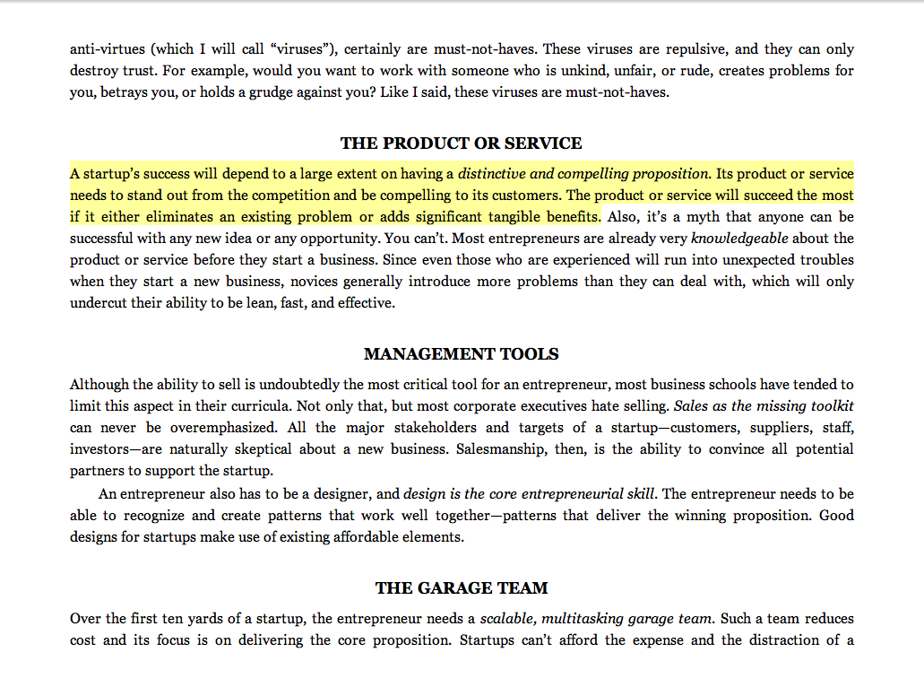 “A startup’s success will depend to a large extent on having a distinctive and compelling proposition. Its product or service needs to stand out from the competition and be compelling to its customers. The product or service will succeed the most if it either eliminates an existing problem or adds significant tangible benefits.”